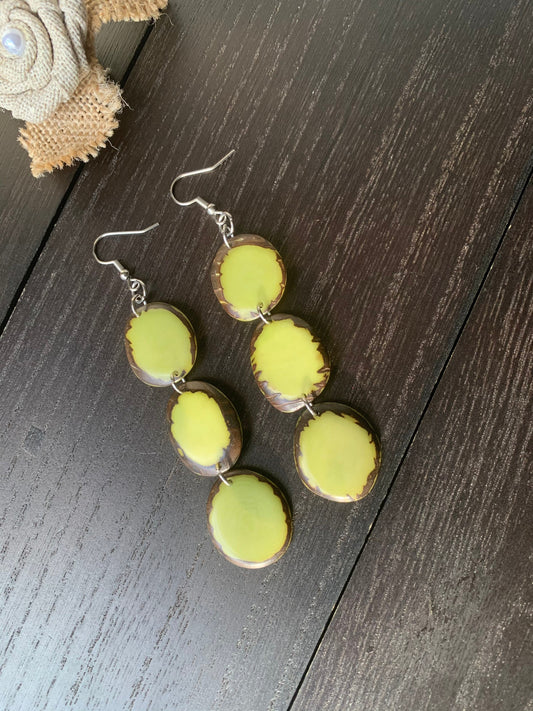 Apple green earrings Tagua jewelry Geometric dangly drop earrings Artsy gifts Square bead earrings Hypoallergenic Fall fashion 2025s