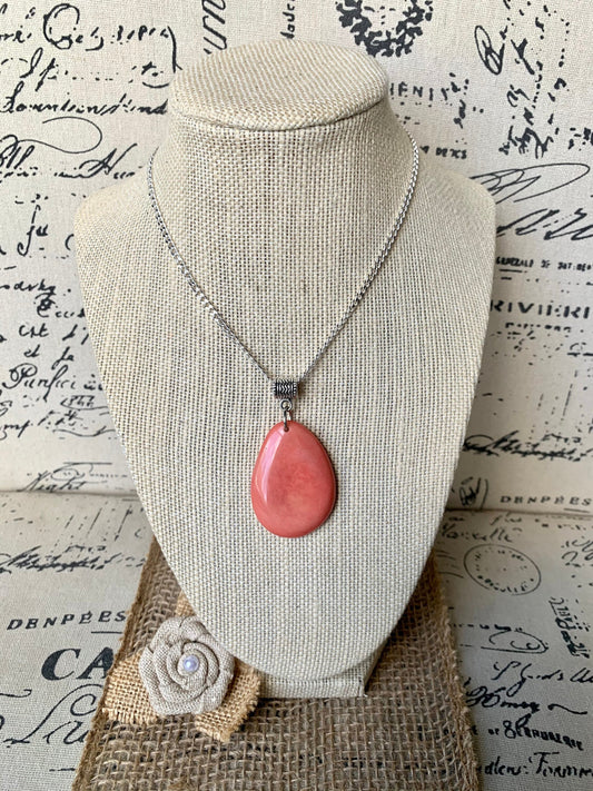 Coral Pink Tagua pendant Fashion jewelry Handmade beaded pendant NO CHAIN Mothers day gifts for wife Spring fashion Beach style