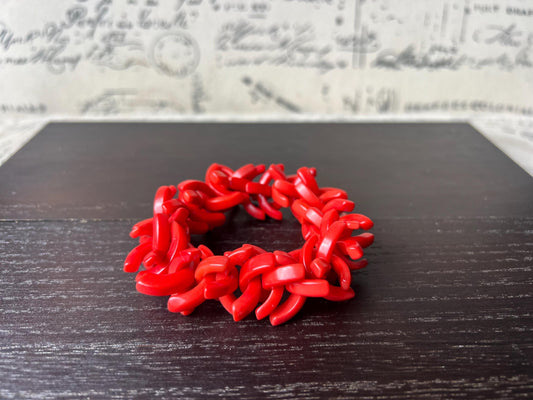 Coral red stretch bracelet Tagua jewelry Summer fashion trends Handmade beaded bangle Elastic cuff bracelet Statement beaded bracelet