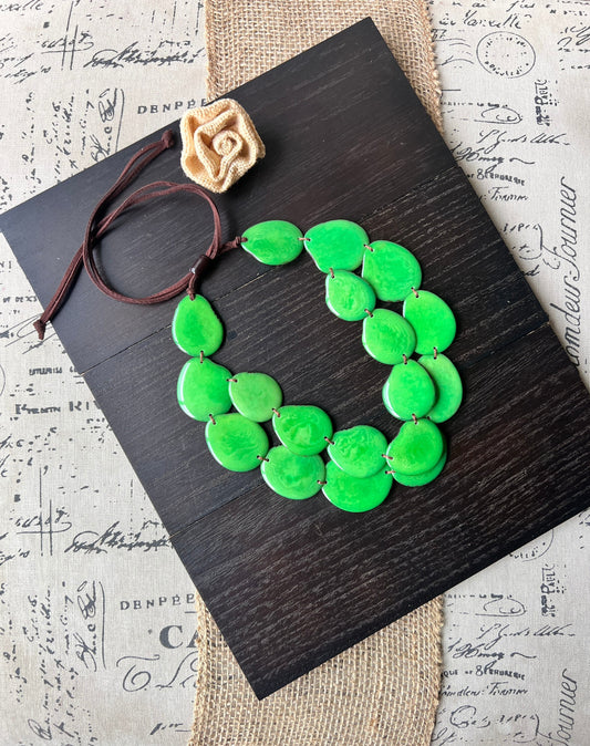 Green statement necklace Tagua jewelry Double layer bib Big bold chunky necklace 2 Two strands adjustable length Cruise beach wear for women