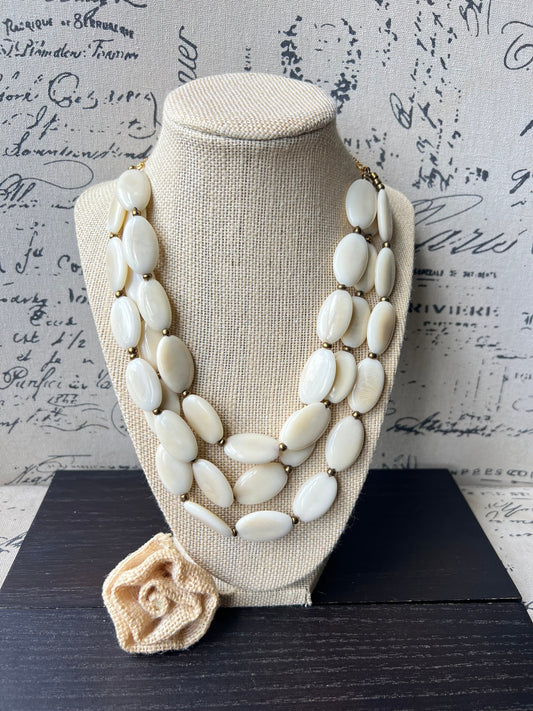 Ivory white fashion 3 layer necklace Tagua nut necklace Lightweight necklace with gold chain Triple strands bib adjustable collar Gift ideas
