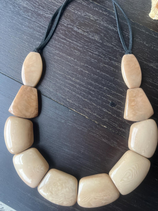 Beige beaded necklace Tagua jewelry Art to wear Big bold necklaces for women Adjustable cord Thick handmade beads necklace Mothers day gifts