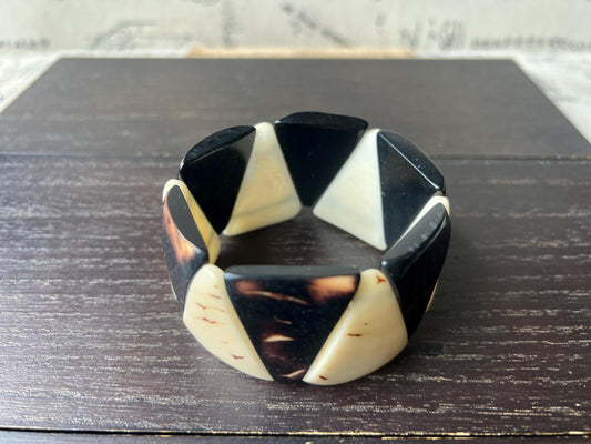 Black and white bracelet tagua jewelry Beaded stretch bangle Elastic stretch bracelet Statement beaded bangle Wearable art Fall fashion