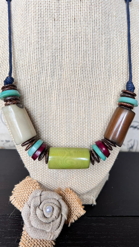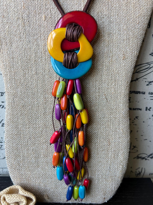 Multi color tagua necklace with coconut beads and adjustable cord Lightweight jewelry