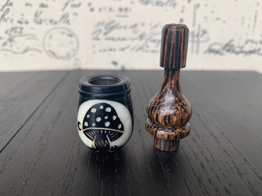 Mushroom smoking pipe Handmade tagua nut and wood pocket pipe One of a kind tribal hand pipe Natural Gift for smokers Hand carved in Ecuador