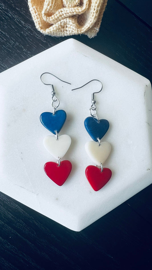 Multicolor earrings Hearts extra long statement earrings Love jewelry Tagua jewelry Casual trendy drops I love you earrings Mothers day gift