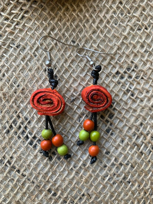 Orange peel and acai drop rose earrings Floral dangles Tagua jewelry Statement jewelry Spring fashion trends Beach trendy style Lightweight