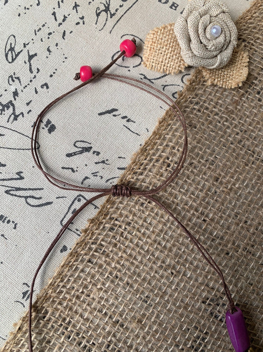 Pink handmade necklace Tagua jewelry Statement beaded necklace Adjustable cord Spring fashion Wearable art Mothers day gifts Simple necklace