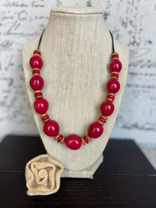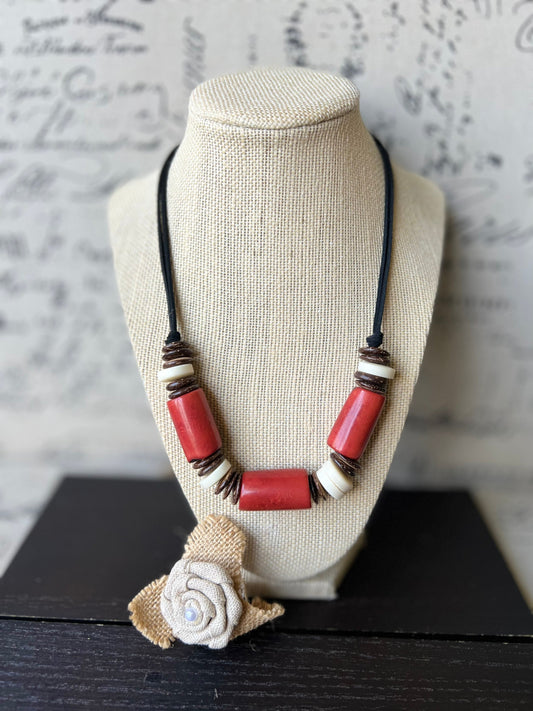 Red and brow necklace Lightweight Tagua and coconut shell collar Resort wear Beach fashion style Birthday gift for mom Christmas gift ideas