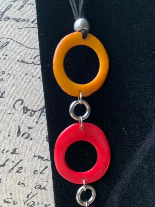 Rainbow statement necklace Tagua necklace Geometric jewelry Donut shape bead Spring fashion Anniversary gift for wife Lightweight adjustable
