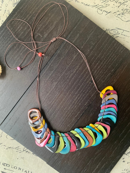 Rainbow Tagua necklace with adjustable cord Mother’s Day gifts for mom Chunky beaded necklace Sunmer trendy fashion Big bold statement bib