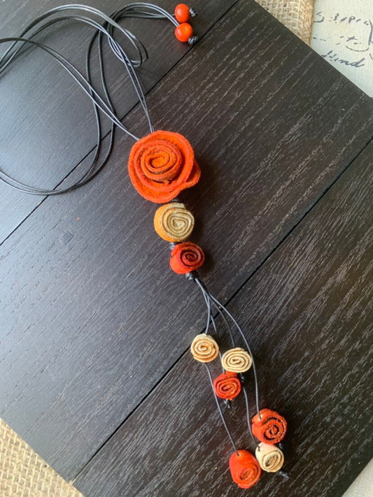 Rose pendant necklace Dainty orange rose necklace Floral choker Summer trendy fashion Extra long adjustable necklaceMother's day gifts
