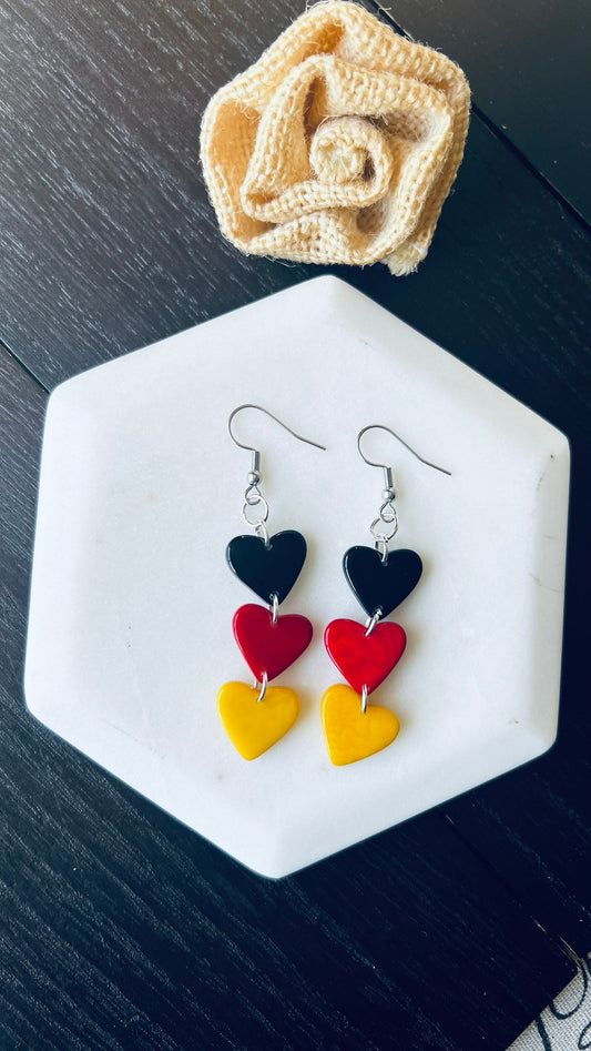 Red Yellow and Black earrings Tagua hearts extra long statement earrings Love jewelry Casual trendy drops Germany flag pride German gift