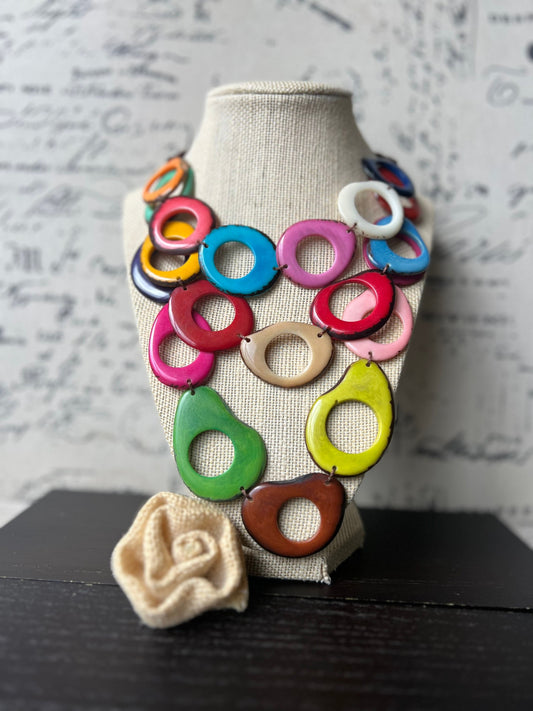 Triple Beaded Tagua Necklace Chunky statement rainbow necklace Big beaded necklace Three layered collar 3 multi strands lightweight necklace