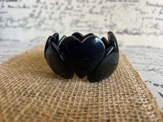 Black heart shaped beads bracelet Elastic stretch bracelet Tagua jewelry Love bangle Wearable Art