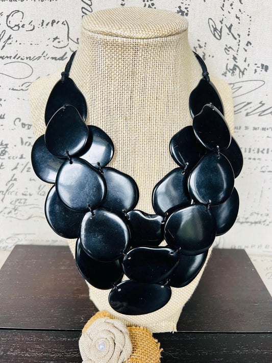 Black fashion 4 layer necklace Big bold chunky necklace Tagua statement necklace Multi layer beaded bib Fall fashion 2025 Wearable Art