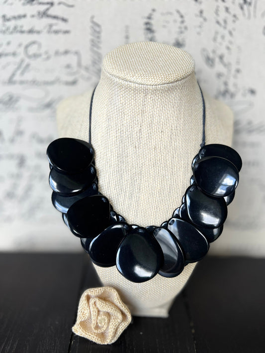 Black multi layer beaded necklace Adjustable cord Tagua jewelry Big bold necklaces Statement bead necklace Wearable art Spring fashion 2025