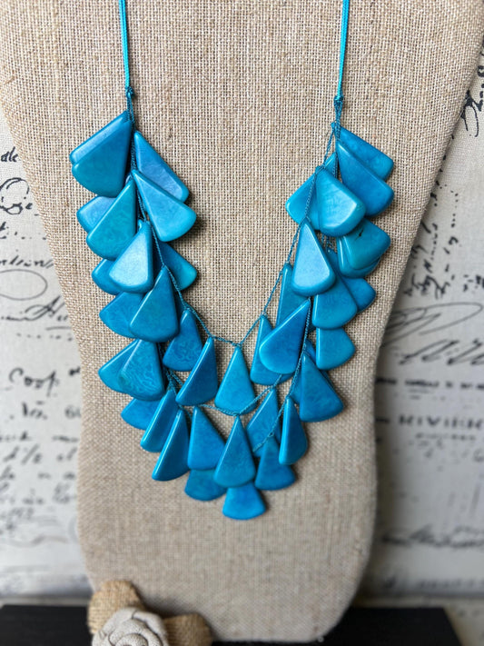 Turquoise blue waterfall necklace Mothers day gift Tagua jewelry Multi layer statement necklace Big bold necklace Art to wear Spring fashion