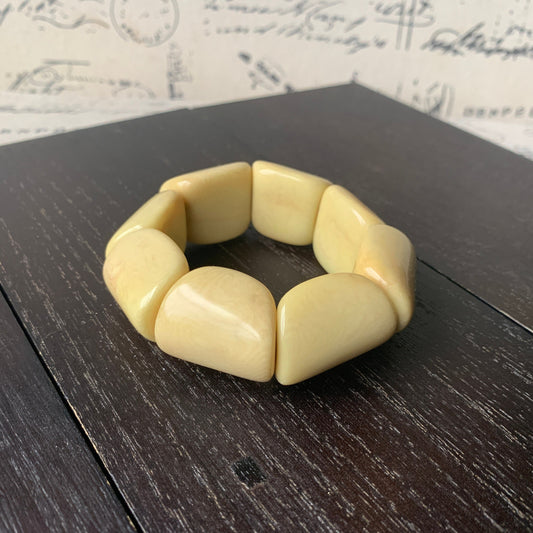 Yellow Tagua Nut Statement Bracelet, Handmade Elastic Stretch Cuff, Fall Fashion
