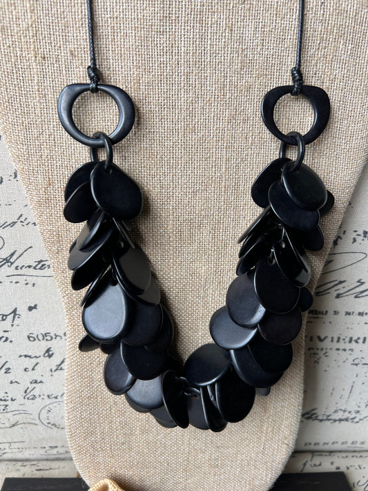 Black Tagua Nut Bib Necklace : Adjustable Cord, Eco Friendly Jewelry