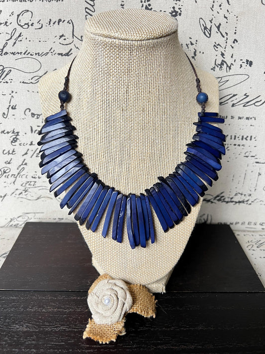 Blue statement necklace Tagua jewelry Handmade beaded necklace Adjustable cord Fall fashion 2025s Wearable art Artistic jewelry Fashionable