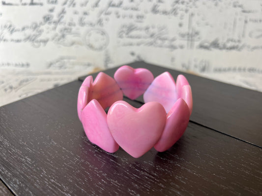 Pink Heart Bracelet : Tagua Nut Bangle, Elastic Stretch Jewelry