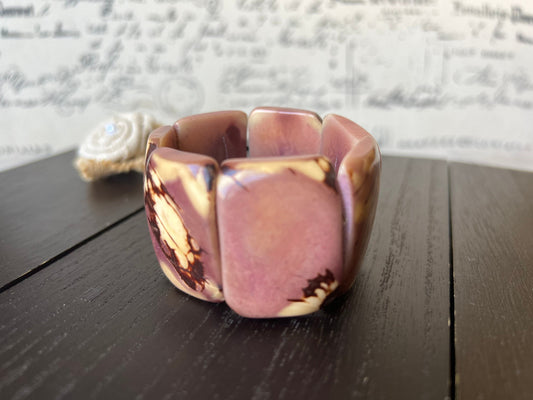 Mauve statement bracelet Tagua bracelet Light purple wide cuff bangle Beaded stretch bangle Fall fashion trends Wearable art