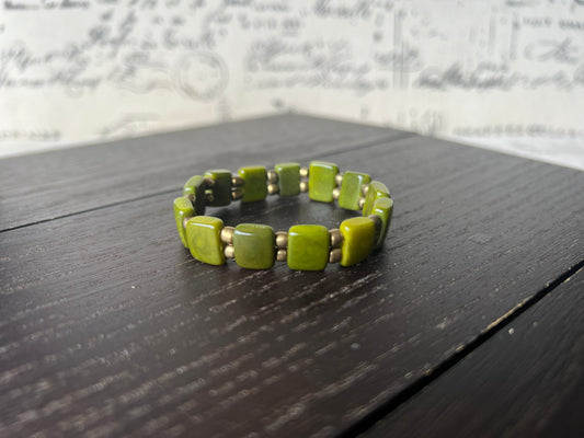 Olive green square bracelet Statement stretch bangle Tagua jewelry Elastic adjustable bracelet Fall fashion Beach trends Christmas stockings
