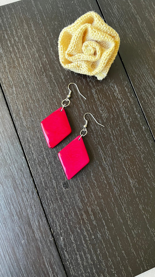 Hot Pink Tagua Nut Earrings, Diamond Dangle Earrings, Hypoallergenic drop earrings, Lightweight jewelry