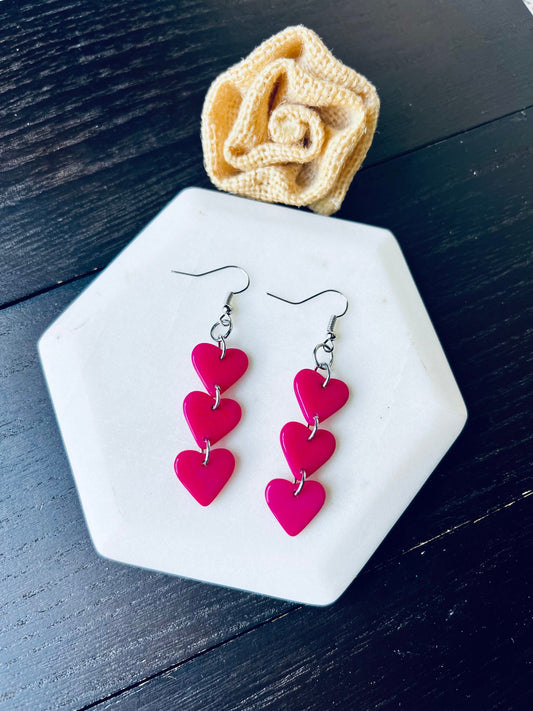 Hot pink statement earrings Hearts earrings Love jewelry Tagua jewelry I love you earring Cascade earrings Waterfall earrings Art to wear