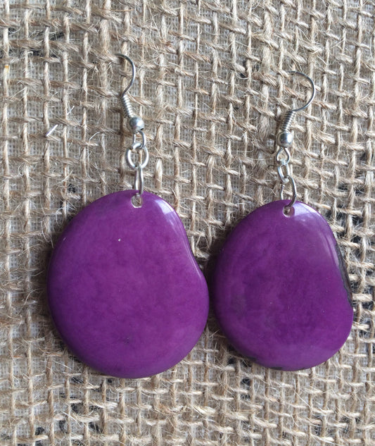 Tagua earrings Big purple earrings Fashion jewelry Easter basket gifts Artsy gifts Beaded earrings handmade Fall fashion 2025s Wearable art