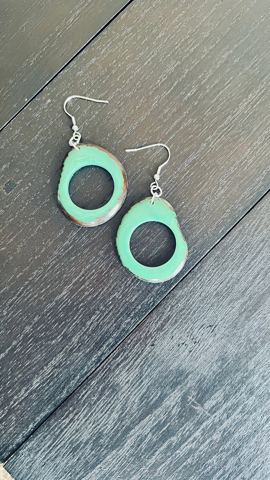 Tagua earrings Big turquoise green earrings Fall fashion trends Large hoops Artsy gifts Artistic earrings Dangly earrings Art to wear