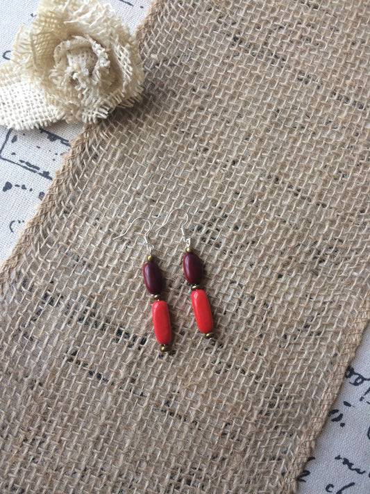 Red Tagua Nut Dangle Earrings: Handmade Organic Jewelry