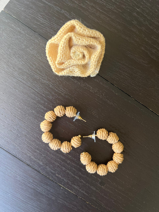 Natural rafia hoop earrings Statement handmade earrings Fall trends Wearable art Dangle and drop earrings Hypoallergenic earrings