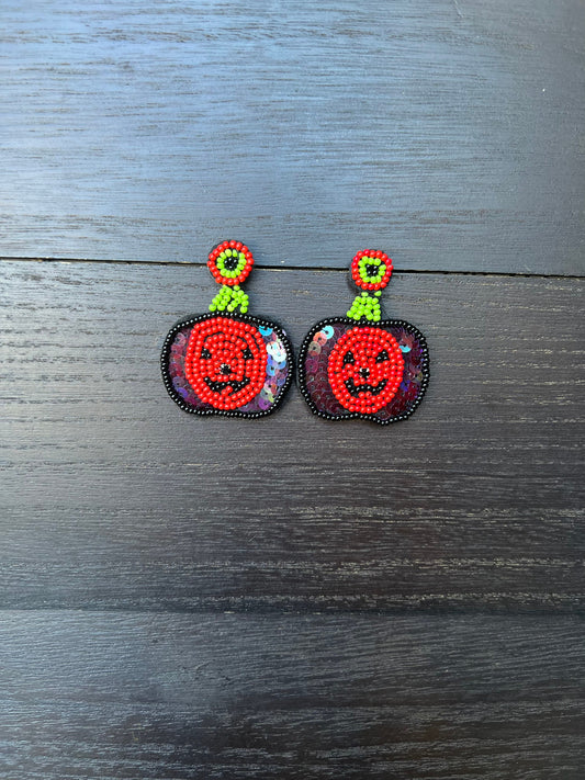 Halloween jewelry for women Pumpkin dangle earrings Seed bead drop earrings Fall fashion trend Orange statement earrings Autumn party gifts