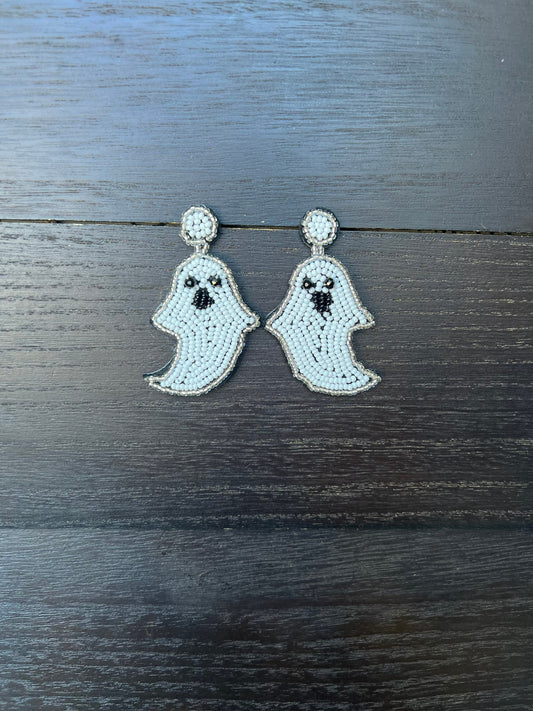 Halloween earrings jewelry Ghost spooky season jewelry Halloween themed beaded jewelry Seed bead drop earrings Fall fashion trend For party