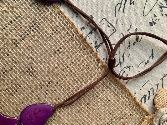 Purple statement necklace Tagua jewelry Big bold necklaces Adjustable cord Double strand necklace Wearable art Fall fashion Artsy gifts
