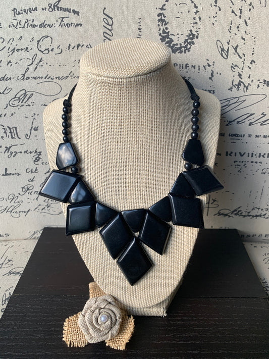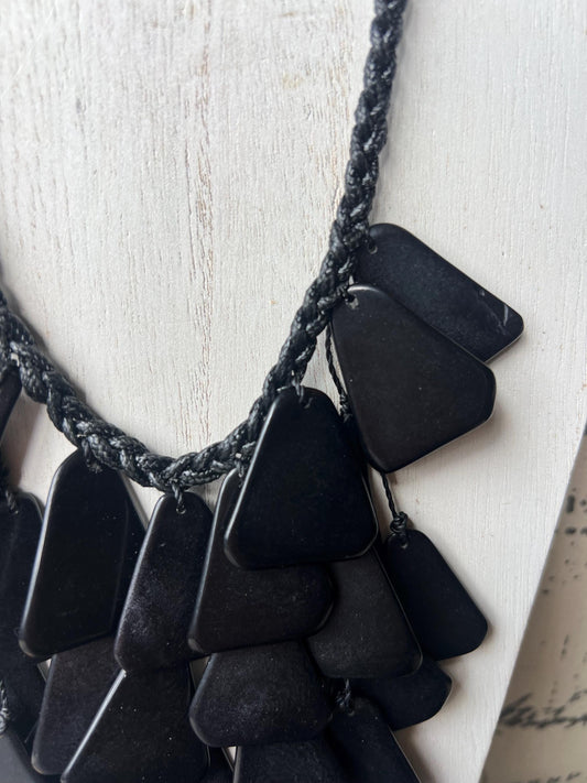 Black statement necklace Tagua jewelry Geometric necklace chunky Lightweight necklace Adjustable cord Beaded necklaces Wearable art