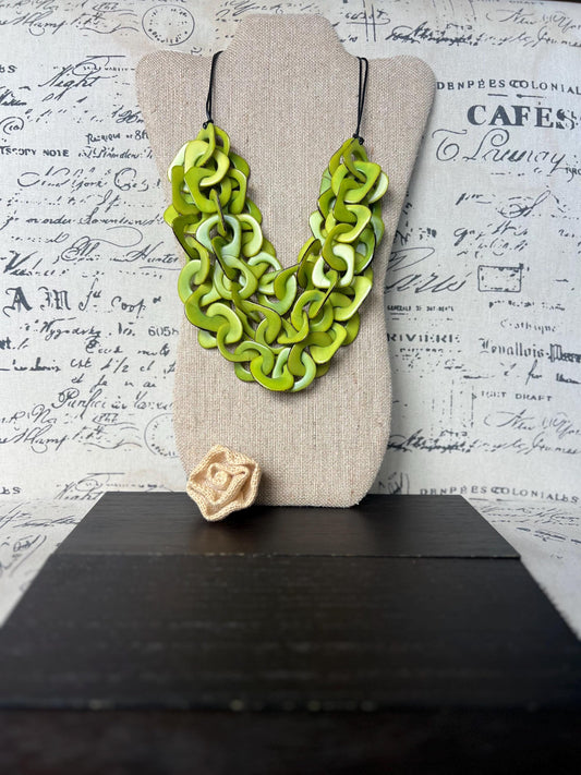 Green statement necklace Tagua jewelry Adjustable cord Big bold necklaces Fall fashion Wearable art Cruise and beach wear Artsy gifts
