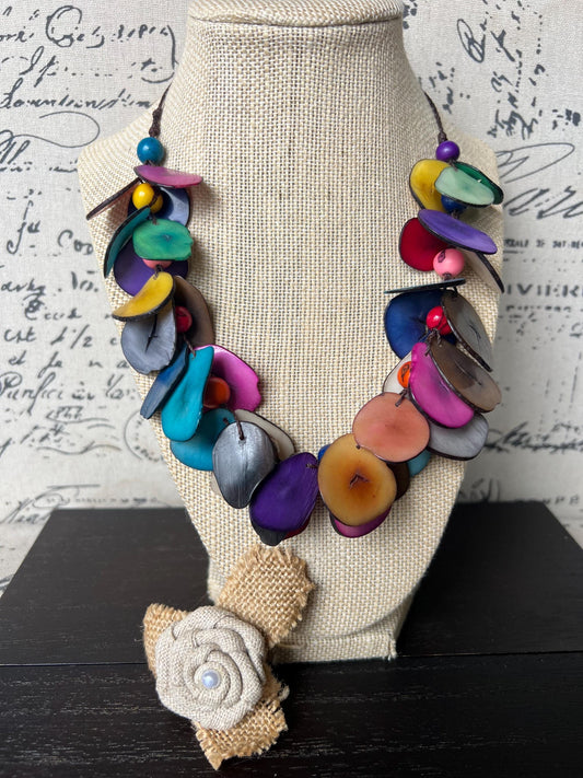 Rainbow Tagua Necklace: Handmade Adjustable Statement Jewelry