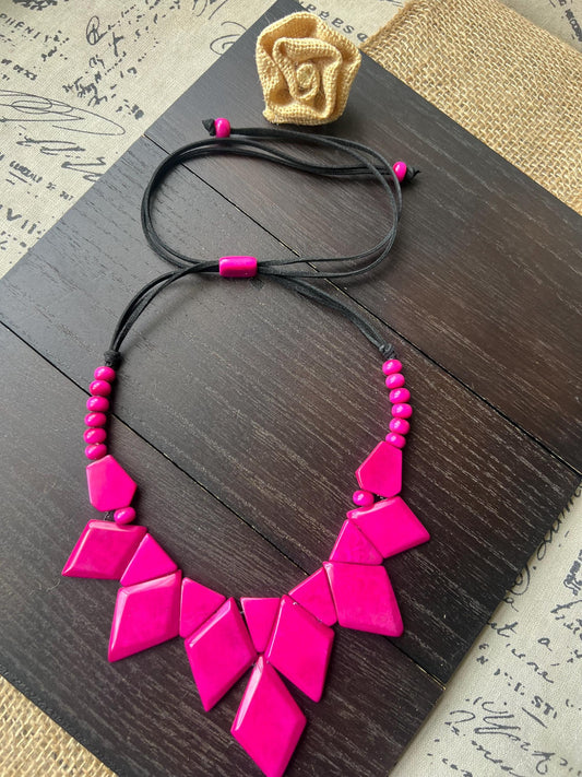 Hot pink statement necklace Tagua nut jewelry Art to wear Geometric necklace chunky Adjustable cord Beaded necklaces