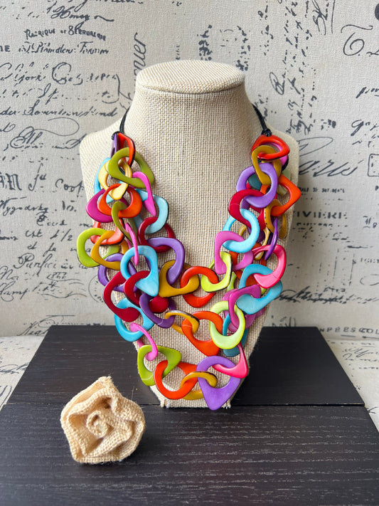 Rainbow statement necklace Tagua jewelry Adjustable cord Big bold necklaces Statement necklaces for women Wearable art Fall fashion