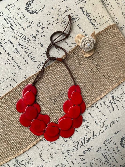 Red triple layer necklace Tagua nut jewelry Big bold necklaces Multi strand necklace Handmade beaded necklace Fall fashion Wearable Art