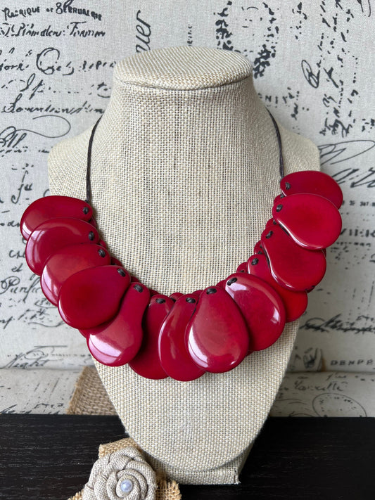 Red statement necklaces for women Tagua necklace Adjustable cord Handmade beaded necklaces Wearable art Fall fashion Beach wear Artsy gift