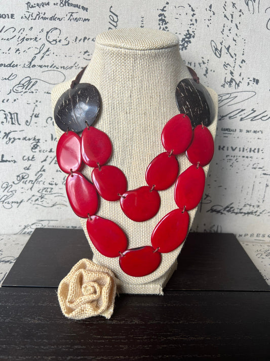Red multi strand beaded necklace Tagua jewelry Coconut bead necklace Adjustable cord Big bold necklace Multi layer Wearable art Cruise wear