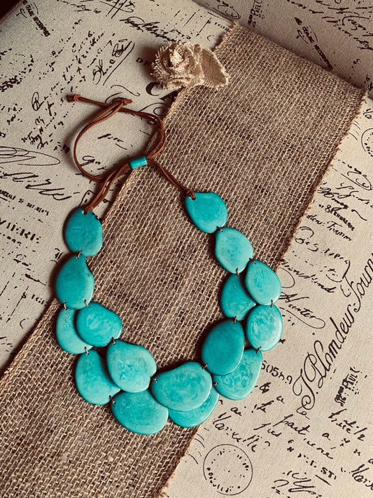 Turquoise statement necklace Wearable art Tagua jewelry Fall fashion trends Big bold necklaces Double strand necklace Artsy gifts
