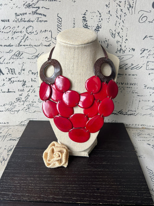 Red Tagua necklace Big bold necklaces for women Wearable art Double strand necklace Adjustable cord Statement necklace