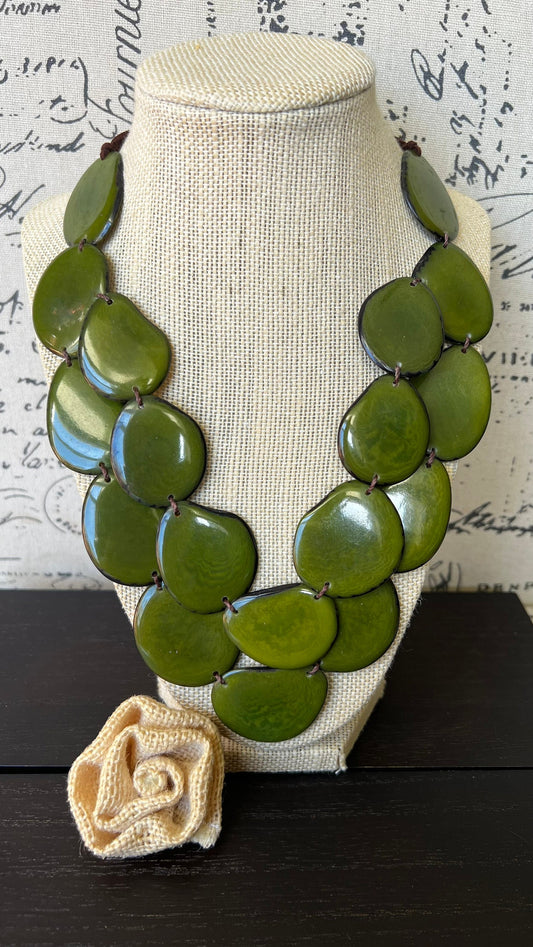 Green Tagua Nut Statement Necklace, Adjustable cord, Chunky Eco Friendly Jewelry, Multi layer bib, Christmas gifts,