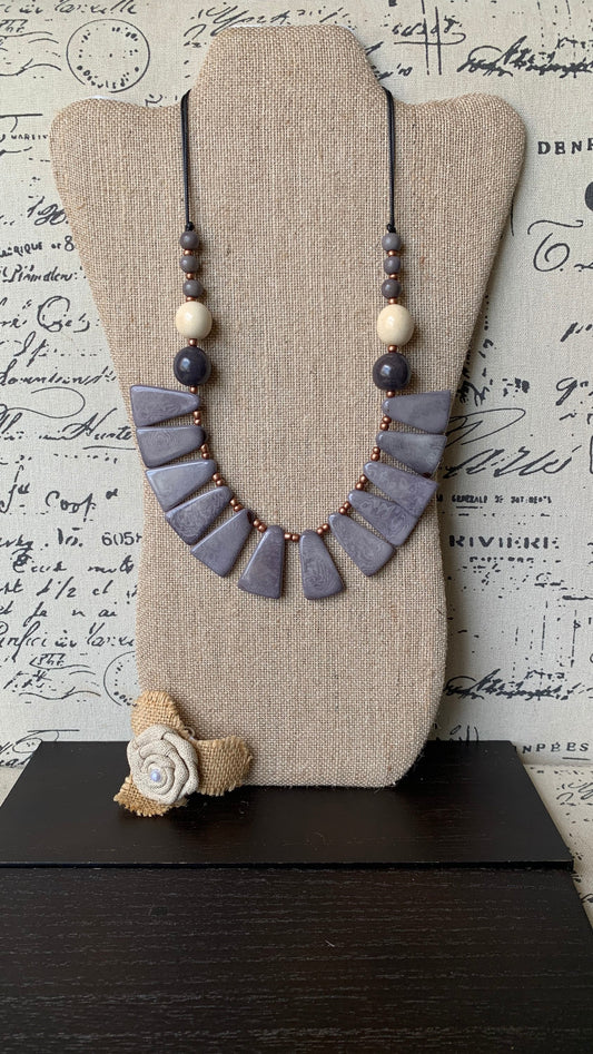 Gray beaded necklace Fashion necklace Tagua jewelry Multi layer necklace Art to wear Multi color statement collar Wearable art Fall style