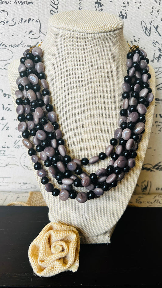 Gray statement necklace Art to wear necklace Fall fashion Artsy gifts Beaded necklaces handmade Adjustable cord Wearable art Beach wear